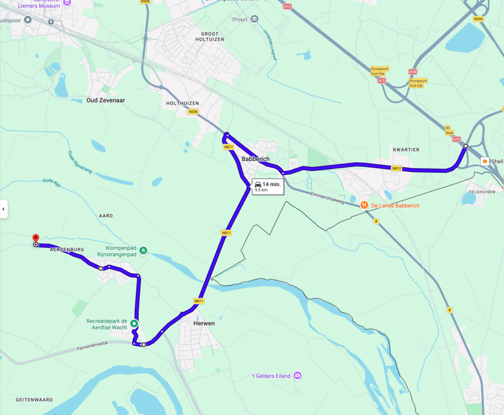 - Rijdt Babberich door tot de rotonde en neem de 3e afslag richting Lobith N811